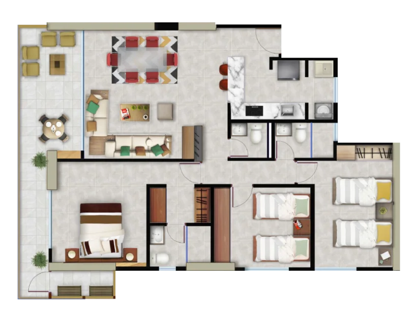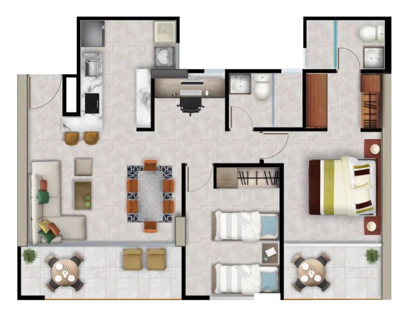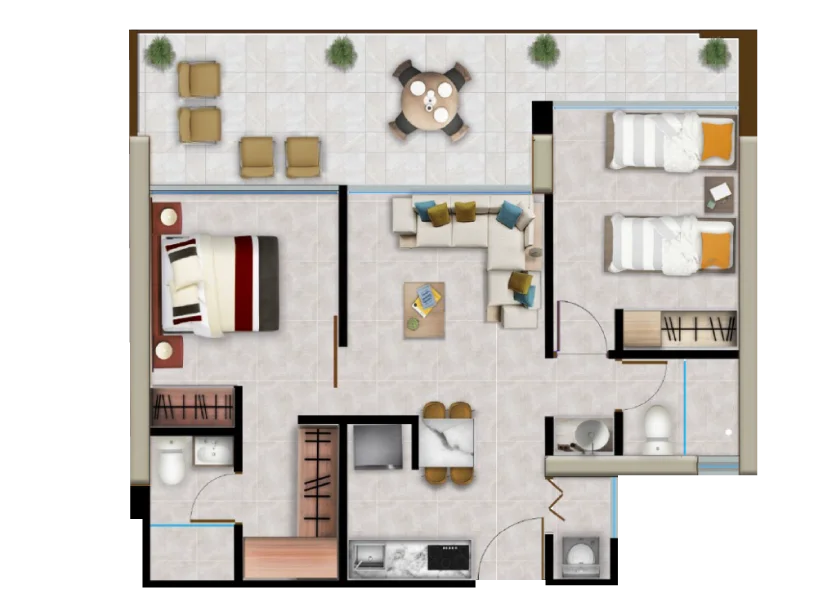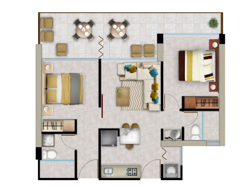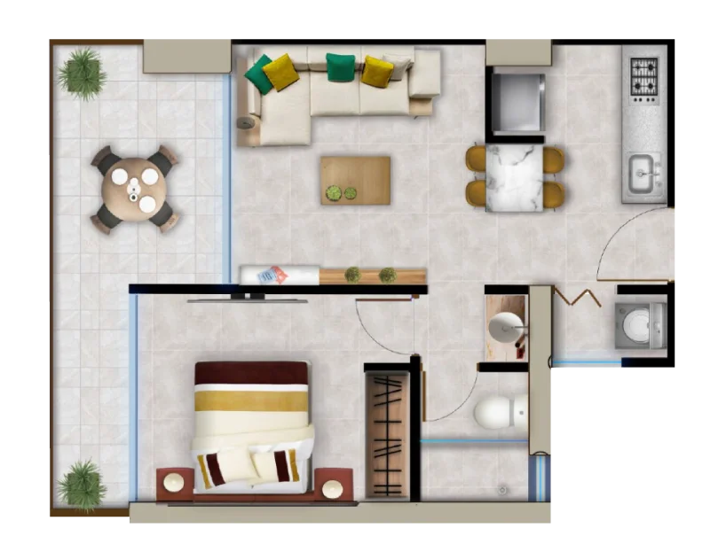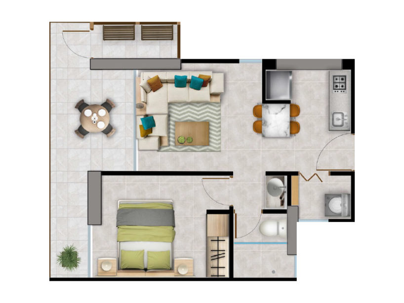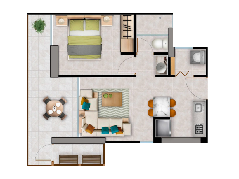 *Las imágenes, muebles, electrodomésticos y elementos de decoración ilustrados son una representación artística, los lugares, espacios y ambientación corresponden a imágenes de referencia que no representan específicamente la realidad del proyecto.