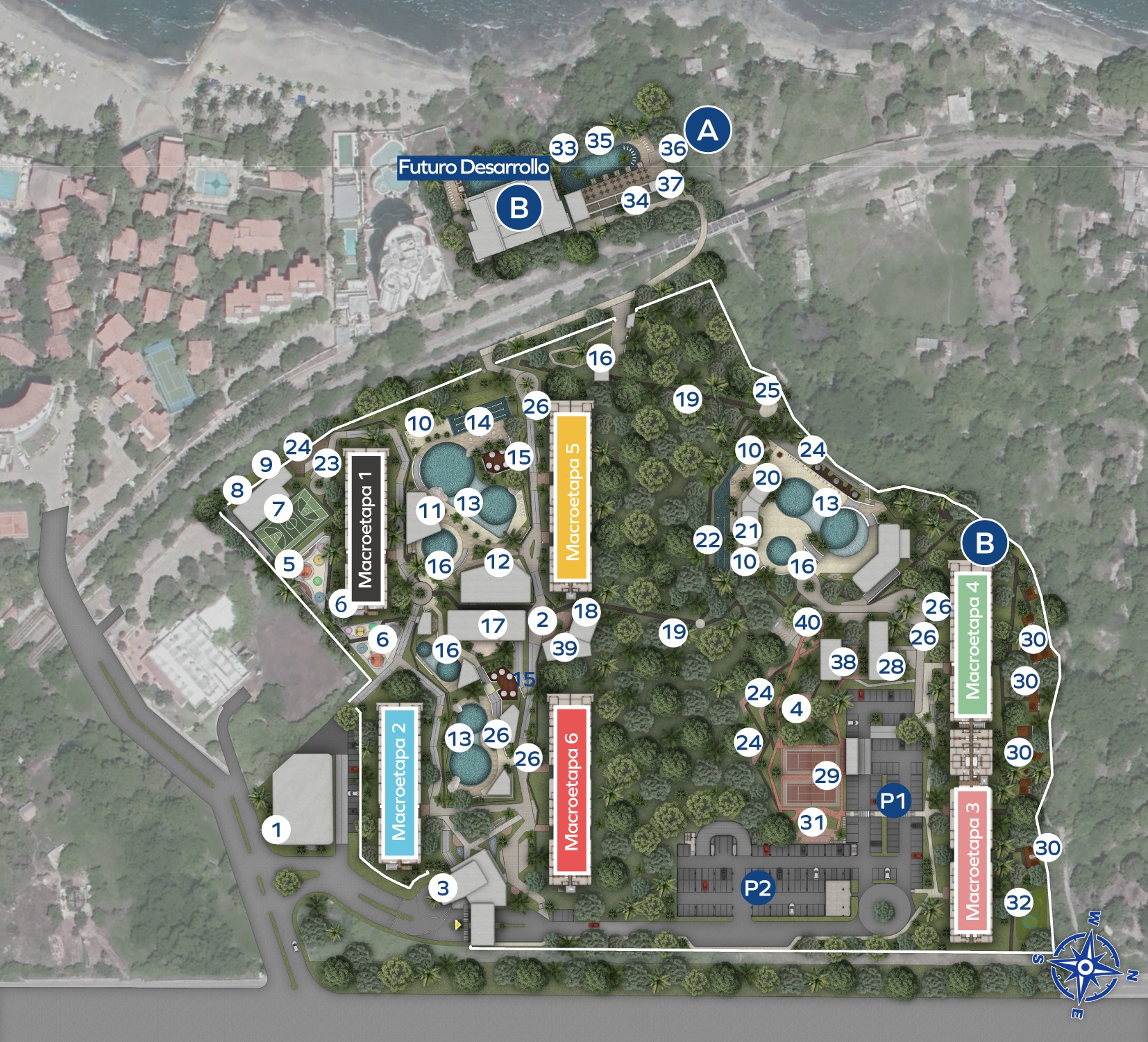 El proyecto Santa Marina se desarrollará bajo licencia Turística. El proyecto estará integrado por dos globos de terreno; una Zona Residencial y un Club de Playa que serán parte de la misma copropiedad. El Club de Playa se encontrará ubicado en primera línea de mar, y se podrá acceder al mismo a través de una reserva vial que no pertenece al proyecto. El proyecto Santa Marina será desarrollado por macroetapas, cada una de las cuales tendrá diferentes etapas (enunciadas como etapas 1 a 12 en el encargo fiduciario de preventas), por tanto, las zonas comunes ofrecidas en cada macroetapa estarán supeditadas en su entrega al desarrollo y escrituración del 51% o más de las unidades de la última etapa de la correspondiente macroetapa. Las imágenes, muebles, electrodomésticos y elementos de decoración ilustrados son una representación artística, los lugares, espacios y ambientación corresponden a imágenes de referencia que no representan específicamente la realidad del proyecto. Las dimensiones, áreas privadas y construidas, precios, separación, cuotas, texturas y colores ilustrados y anotados en las imágenes publicitarias, pueden tener variaciones por efectos de la coordinación técnica, diseños técnicos finales, disponibilidad de materiales, aprobaciones de la licencia de construcción por parte de la Curaduría Urbana y el proceso constructivo.